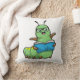 Caterpillar as Nerd with Book & Glasses Throw Pillow