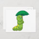Caterpillar at Raining with Umbrella Postcard