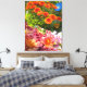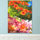 Black Swallowtail butterfly caterpillar resting on colorful mums in the garden on Wrapped canvas print.