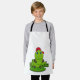 Great color and even though I ordered the kid size, it covers well enough to use during the holidays. I am not a big woman and prefer a shorter apron. I stand 5"6" and the length of the garment goes to mid-thigh. The tie straps fit well at my waist and even though there is no neck strap adjustment, the opening is plenty big enough. I am happy with the size and fit. I am sharing my apron with my 10 year old grandson, too! The color is vibrant and looks good, as shown on the website. The stitching looks strong and reinforced. Photographed is front side and back side of the apron, reinforced straps and coloring. My phone camera may not be the best at showing the details.