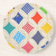 Colorful cathedral window quilt pattern with cotton muslin, calico print, and gingham.