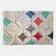 Close up of old cathedral window quilt pattern with calico prints and muslin fabric.
