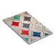Close up of old cathedral window quilt pattern with calico prints and muslin fabric.