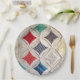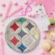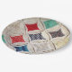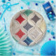Close up of old cathedral window quilt pattern with calico prints and muslin fabric.