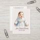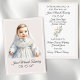A simple and elegant keepsake card for a baby boy's baptism, featuring a sweet illustration of a little one in his baptismal gown on a soft blue background. The illustration is fully customizable and can easily be replaced with a photo of your choice. These cards make beautiful baptism favors and heartfelt memory for your guests.