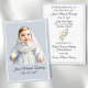 A simple and elegant keepsake card for a baby boy's baptism, featuring a sweet illustration of a little one in his baptismal gown on a soft blue background. The illustration is fully customizable and can easily be replaced with a photo of your choice. These cards make beautiful baptism favors and heartfelt memory for your guests.