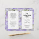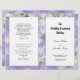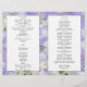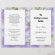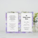Catholic wedding ceremony template to be folded in half after purchase. Lavender purple hydrangea flowers make a pretty background, with white panels that hold black text.