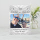 Back features a lovely faux-satin background with the initial of the couple's new last name largely displayed in center. All text is in a lovely silver font. Very elegant.