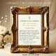 Featuring a beautiful traditional Catholic image of the image of the betrothal of Mary and Joseph with a decorative gold border accented with white flowers and a white lace background. A prayer is on the back for the bride and groom. All text and fonts can be modified.