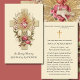 Remember your loved ones in prayer with this beautiful traditional Catholic personalized religious prayer card of the image of the Immaculate Heart of Mary with a dove and pink roses overlaid on a cross to be given to family & friends. All text, fonts, and images may be easily customized.
