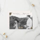 Design features the photo you supply as main image. The image of graceful roses appears in both top left and bottom right corners, creating a gentle frame. Above photo, the text, "Save the Date" along with the date of wedding is displayed in an elegant silver font against a subtle rose-colored background. The delicate background color is called "Snow" and embodies purity and freshness with its gentle but warm hue. City and state of wedding appear just below. At bottom of front design, the image of a cross is displayed between two golden hearts. Initials of bride and groom appear on either heart, emphasizing that this couple is to be joined in the love of Christ.