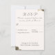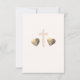 Design features elegant rose border at top left and bottom right corners. Design follows the proper format for a wedding response card. Text is displayed in an elegant silver font. Reverse displays a cross with two heats, one on either side. Initials of bride and groom are displayed on hearts in white Nuptial font. The delicate background color is known as "Snow" and embodies purity and freshness with its gentle but warm hue. Perfect color for wedding stationary! Designed to coordinate with the Catholic Grace Wedding Suite.