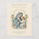 Featuring a beautiful image of the Blessed Virgin Mary holding the Baby Jesus accented with a floral design and a scripture verse below. All text and fonts may be modified.