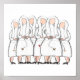 Catholic nuns, pen & ink poster art, 6 nuns wearing white habits holding rosaries.