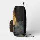 Design background features a reproduction of the painting, "The Little Madonna (Madonnina)" by Roberto Ferruzzi. Over the years, the painting's name has become known as "Our Lady of the Streets." Whatever the name, the image is strikingly beautiful and comforting to all who lay eyes upon it. This image seems to be brought to life through this backpack design. Written on front pocket, in white lettering are the customizable words, "The key to happiness is in her hands." The image of a key is displayed below.