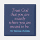 "Trust God that you are exactly where you are meant to be."