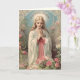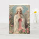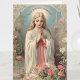 Featuring a beautiful Catholic religious image of the Blessed Virgin Mary with her hands folded in prayer in a beautiful garden.