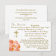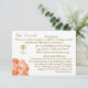 Designed to coordinate with the Terracotta Rose Catholic Wedding Suite, this design is simple yet elegant. Your text is featured in a gold-color displayed in proper format for an enclosure card and displays the traditional cross and rings symbol for marriage at left of text. The image of a terracotta and peach rose bouquet is displayed at bottom left.