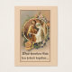 A beautiful Catholic wedding favor remembrance for the Bride and Groom to give to each wedding guest on your special day. This is a beautiful vintage image of the betrothal of the Blessed Virgin Mary and St. Joseph. Text and fonts can be customized.