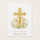 Celebrate the Sacrament of Holy Matrimony with this elegant Catholic wedding prayer card. Featuring a radiant gold cross entwined with wedding bands and ornate scrollwork accented with white roses. The front reads “United in the Heart of Jesus” above the names of the bride and groom. Inside, a reverent nuptial blessing invokes God’s grace and the intercession of the Blessed Virgin Mary. A beautiful keepsake for the wedding day, perfect for Catholic guests, prayer favors, or a bridal devotional.