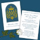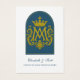 This reverent Catholic wedding prayer card features a radiant gold Marian monogram crowned in glory and framed within a Marian blue arch. The front honors Our Lady, whose intercession blesses the Sacrament of Holy Matrimony. Inside, a solemn nuptial blessing prays for the couple’s unity, peace, and holiness, modeled after the Holy Family. A cherished keepsake for weddings rooted in the beauty of Catholic tradition and devotion to the Blessed Virgin Mary.