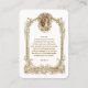 This beautiful Catholic Wedding Prayer Card features a sacred scripture from Mark 10:6-9, elegantly framed with a vintage floral design and a depiction of the betrothal of Mary and Joseph at the top. It serves as a cherished reminder of the sacrament of marriage, highlighting the union that God has joined together. This card is ideal for Catholic weddings, providing a meaningful keepsake for the bride, groom, and their guests. Personalize this traditional card for a unique touch, making it a treasured memento or wedding favor of this sacred occasion. Perfect for including in wedding programs or as a prayerful gift. Mark 10:6-9 A prayer is on the back for the bride and groom. All text and fonts can be modified.