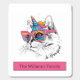 Image By Afishka | Shutterstock. Image ID: 1154581237 | Cute Cat in a unicorn mask, rainbow glasses, mane, horn. So meowgical - lettering quote.