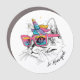 Image By Afishka | Shutterstock. Image ID: 1154581237 | Cute Cat in a unicorn mask, rainbow glasses, mane, horn. So meowgical - lettering quote.