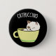 Catpuccino Funny Kitty Cat In Cup Pun Dark BG Button