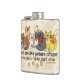 Well made flask, a little better than I had expected. Flask came in clear plastic box which gave it a nice presentation when I took it out of the zazzle packaging. Image is not printed on flask but on sticker. Don't know how this will hold up I haven't used it yet. This would make a Great gift! I plan to purchase more for friends! Cheers. I thought a little brighter than computer. Very crisp, writing wasn't