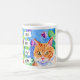 Whimsical folk art watercolor orange cat and blue and purple flowers coffee cup. Quote, "Cats are my Tribe." generativecontent