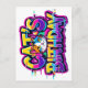 Vibrant and energetic "Cat's Birthday" design in bold rainbow gradient with cool glitch effect, bright neon outlines and a cute colorful cat face in the center.