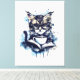 Cats Books Coffee Watercolor Boho Abstract Canvas Print