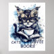 Cats Books Coffee Watercolor Boho Abstract Poster