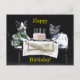 Cats celebrating a birthday with cake and candles postcard