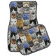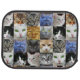 Set of car mats with pictures of cats. Cat collage includes faces of cute black, white, gray, striped, tabby, orange, and tiger kitties.