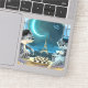 Night Eiffel Tower Blue Cat Square Vinyl Sticker