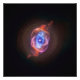 This image of the Cat's Eye nebula is a composite, created from data from the Hubble Space Telescope and the Chandra X-Ray Observatory. It has red and purple tones with a blue eye-like centre. Also known as NGC-6543, the Cat's Eye nebula is a planetary nebula formed from a dying star. The material surrounding the central star is travelling at approximately 4 million miles per hour.