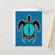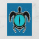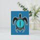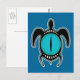 Black sea turtle with a bright blue cat's eye on its back. Sea turtle art.