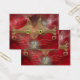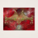 A stylized cat face made of glowing gold curves and curlicues, with wide green-gold eyes, against a red fractal background.