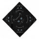 I really like this bandana. It is a little small, but it's made of t-shirt material so it stretches. I tie mine before I put it on which makes it easier since it is small. Once it's on, it NEVER comes untied and I rarely have to redo the knot. The printing is as shown. Crisp and clear borders.