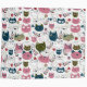 Cartoon like graphic, faces of cats in muted warm colors (green teal pink), seamless repeat pattern