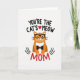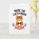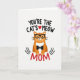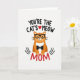 This card features a stylized orange-and-brown cat centered on a white background, giving a sweet, knowing look that feels like a friendly wink ❤️. The cat has a round face with thick black glasses, adding a smart, cozy charm to the scene. A black bow tie with small white dots sits neatly under its chin, making the character look dressed up for someone special. Near the top, the phrase “YOU’RE THE CAT’S ❤️ MEOW” is written in black, with a red heart replacing the word “love” and drawing the eye. Below the cat, “MOM” appears in rich red letters, set in a rounded style that feels warm and welcoming 👩. On both sides of “MOM,” curved black lines suggest a happy purr, as if the cat is buzzing with affectionate energy. The overall layout stays simple and airy, with the black text and accents contrasting sharply against the white space. The cat’s glasses and bow tie are outlined in black, and the red heart and red “MOM” are the strongest color touches on the page.