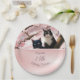 The top portion features two cute cats on a cherry blossom tree. The bottom portion features a pink blush/ rose gold text field with a custom birthday text. Cute birthday paper plates for girls.