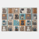 A colorful quilt with various cats is displayed on each square featuring different designs and fabrics.