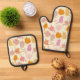 Cats Pattern Orange Pink Yellow Oven Mitt & Pot Holder Set