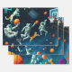 Cats Playing Basketball in Space with Astronauts Wrapping Paper Sheets