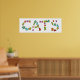 The word CATS made up of cute and colourful cartoon cat illustrations.