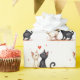 Black and white cat are slow dancing with each other with hearts around them isolated on white