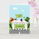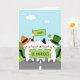 This card shows three stylized white cats lined up on a simple gray road, set in front of rolling emerald hills and a calm blue sky with puffy white clouds. Their close spacing and matching little “U”-shaped smiles give the scene a cozy, friendly closeness, like they’re posing together for a sweet holiday photo 💚. The left cat wears an orange top hat and holds a small flag that says “HAPPY” in dark letters beside a golden star. The middle cat has a black patch on one ear and helps hold a wide lime-green banner across the group. “ST. PATRICK’S” appears in bold, dark lettering centered on that banner, making it the main text on the front. On the right, the third cat wears a green top hat, balancing the color across the trio, while their tiny black eyes and rosy cheeks add a gentle, affectionate look. A single green shamrock floats near the upper right against the sky, like a little ☘️ hovering above the hills.